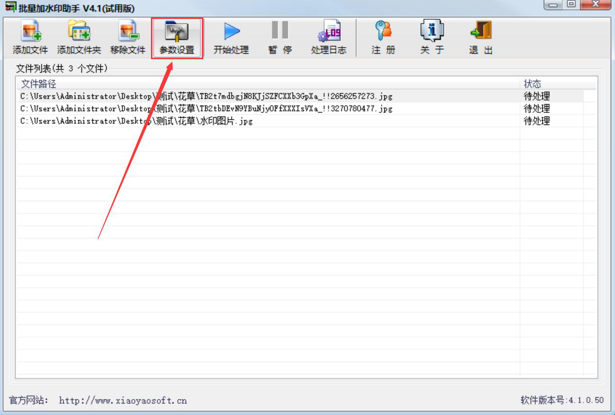 3、然后,我们回到批量加水印助手操作界面,点击菜单栏中的“参数设置”选项。