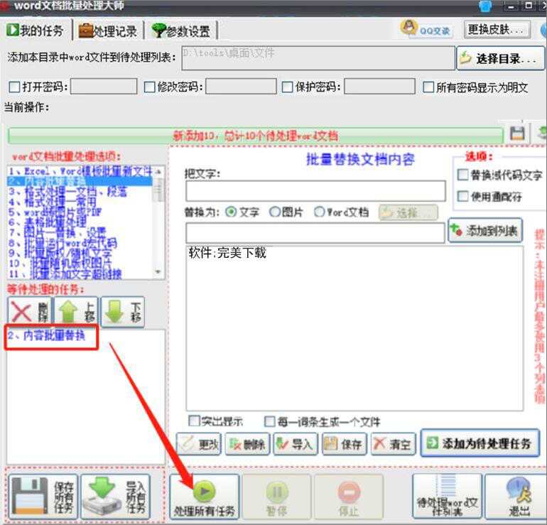 6、最后,我们点击界面下方的“处理所有任务”按钮,Word文档批量处理大师便开始批量替换Word文档内容。