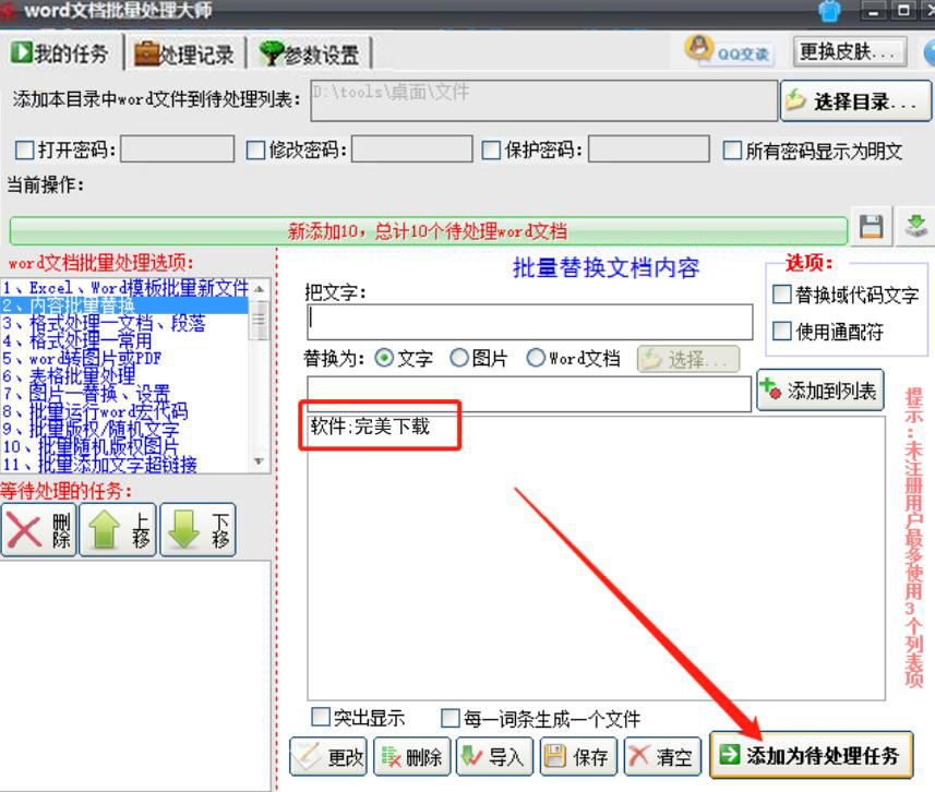 Word文档批量处理大师如何替换Word文档内容?