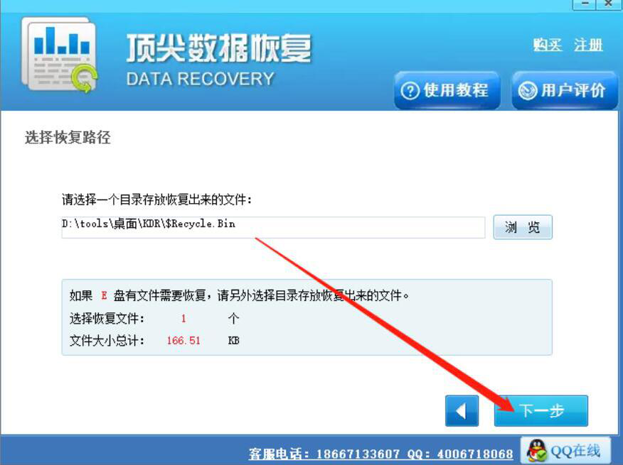 5、最后,我们点击界面右下方的“下一步”按钮,顶尖数据恢复便开始恢复回收站文件。
