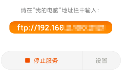 选择访问存储位置,这里选择【内部存储设备】,即可开启共享,显示的ftp地址就是电脑访问手机时需要用到的地址,