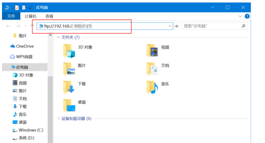 来到电脑,双击打开【我的电脑】,进入窗口,在路径栏输入手机端显示的ftp地址,然后点按Enter键,