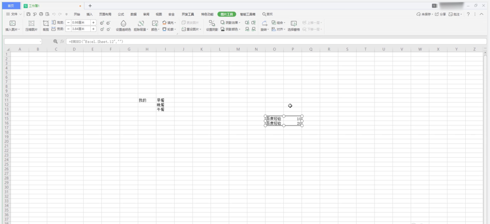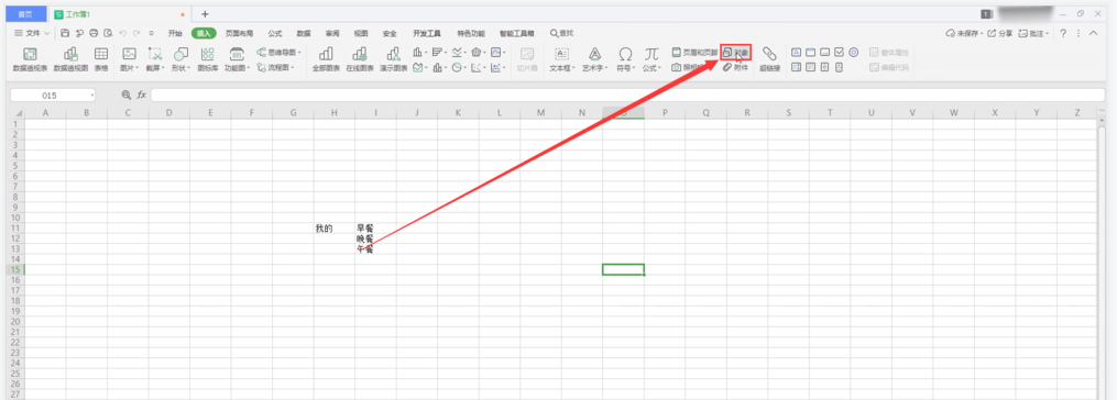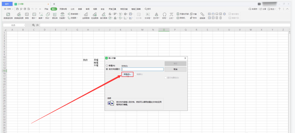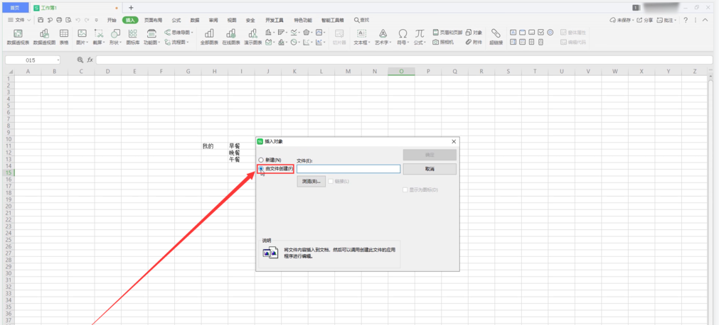 打开一个需要合并的表格文件(本文使用的是WPS 2019版本),在上方菜单栏点击【插入】——【对象】命令,