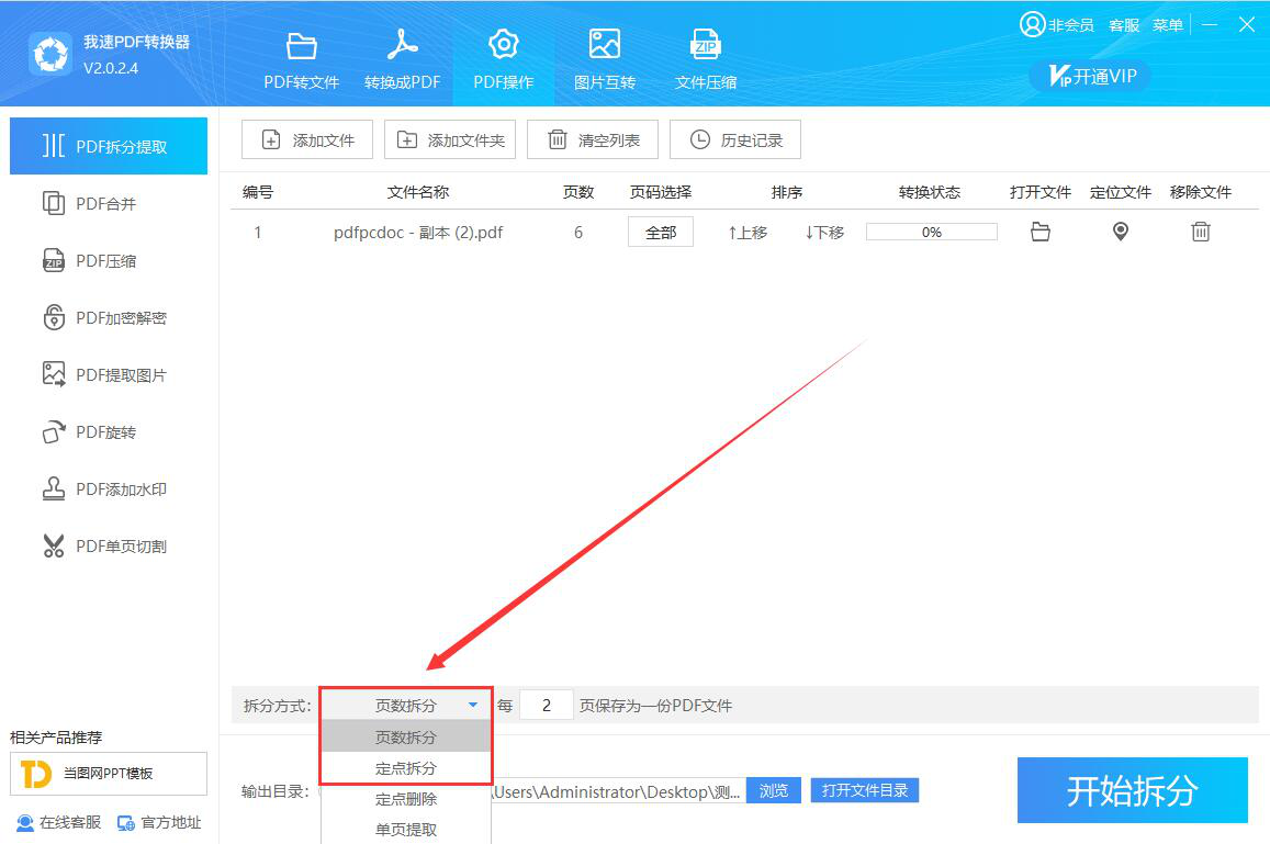 3、然后,我们回到我速PDF转换器操作界面,根据自己的需要选择PDF文件拆分的方式。