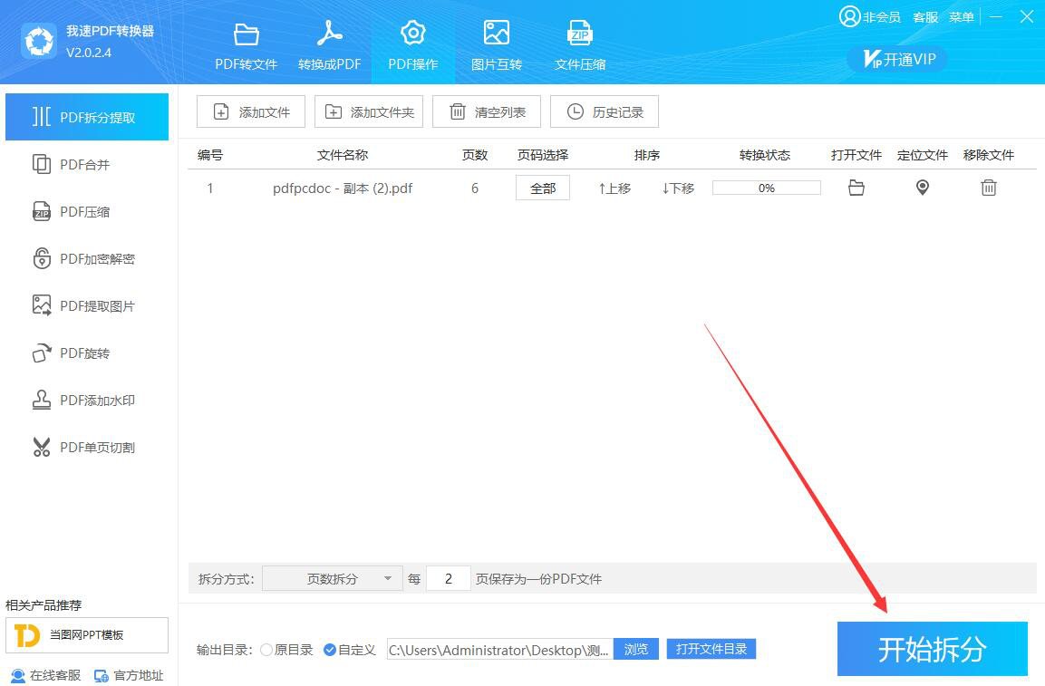 7、PDF文件拆分的方式和输出目录设置好了,我们点击界面右下方的“开始拆分”按钮,我速PDF转换器便开始拆分PDF文件。