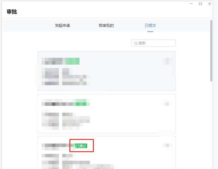 提交成功,返回审批界面,点击上方【已提交】,查看离职审批是否通过,如图所示,已经通过了审批。