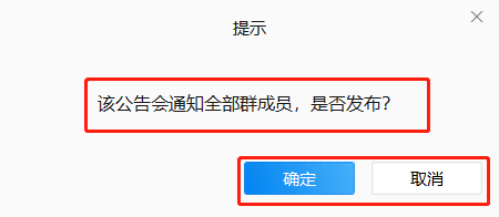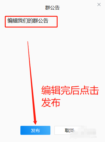 弹出群公告窗口,如图,填写相关内容,点击【发布】按钮,
