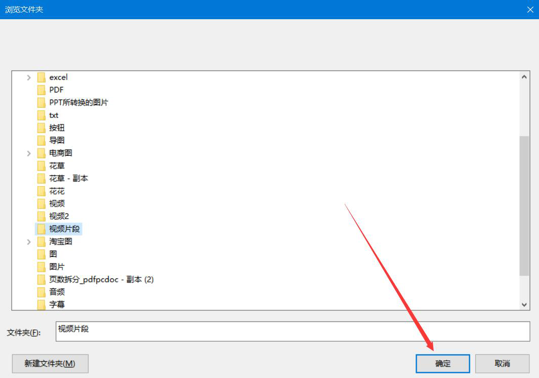 6、在家软视频转换压缩软件弹出的浏览文件夹窗口中,我们选择视频裁剪后的保存路径,再点击“确定”按钮。