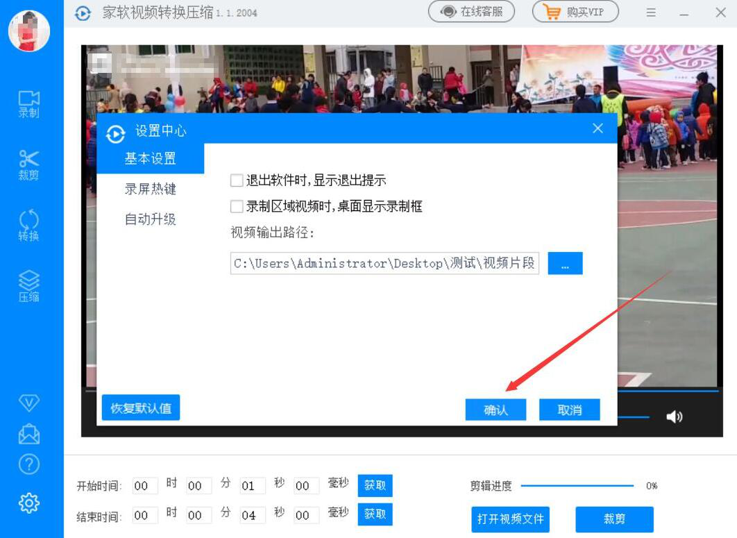 7、回到家软视频转换压缩软件设置中心,我们点击“确认”按钮。