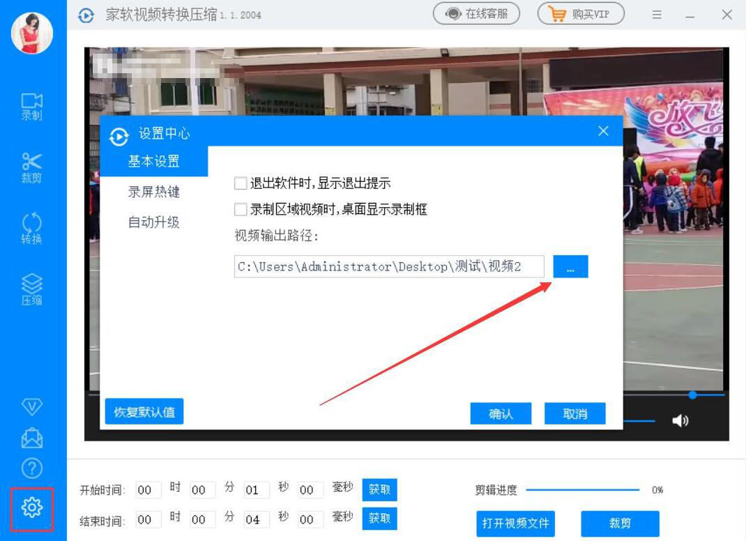 5、接下来,我们切换至家软视频转换压缩软件的设置界面,点击视频输出路径中的“…”按钮。