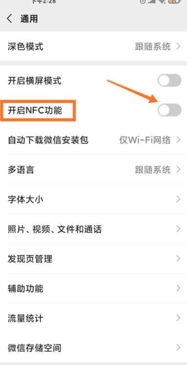 找到【开启NFC功能】选项,默认关闭,点击打开即可,