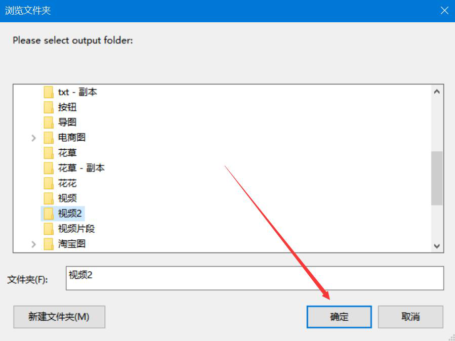 8、在音视频剪辑大师弹出的浏览文件夹窗口中,我们选择视频剪切后的保存路径,再点击“确定”按钮。