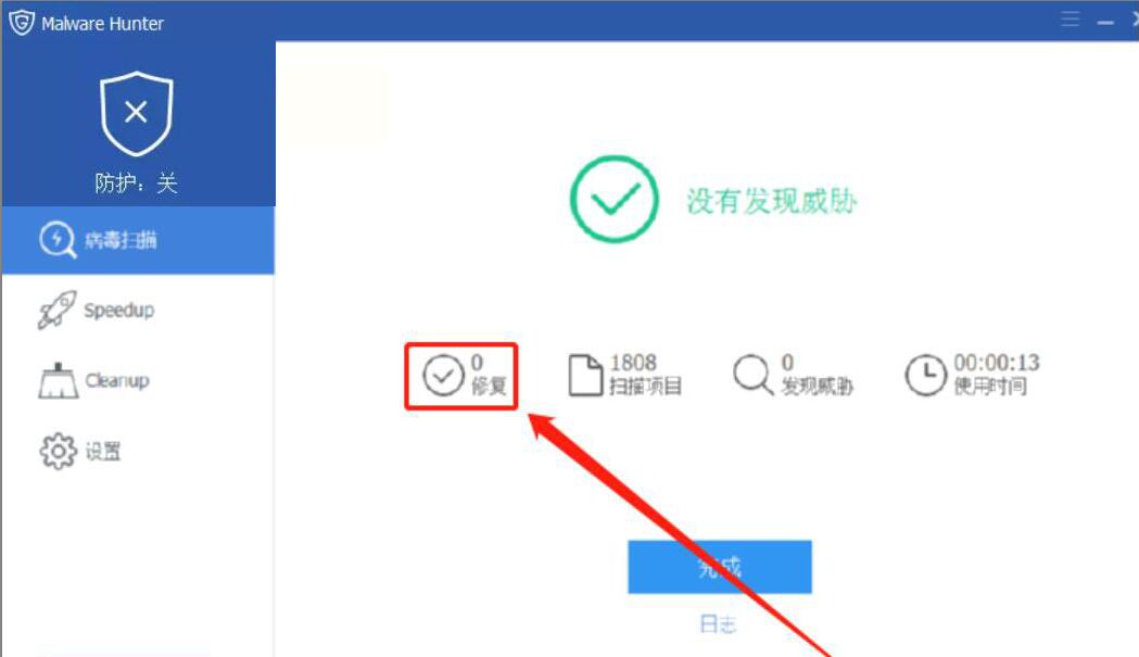 4、接下来,扫描完成,我们在Glarysoft Malware Hunter Pro界面中便可以看到电脑病毒的情况。如果有病毒的话,就点击“修复”按钮,Glarysoft Malware Hunter Pro便会查杀病毒。