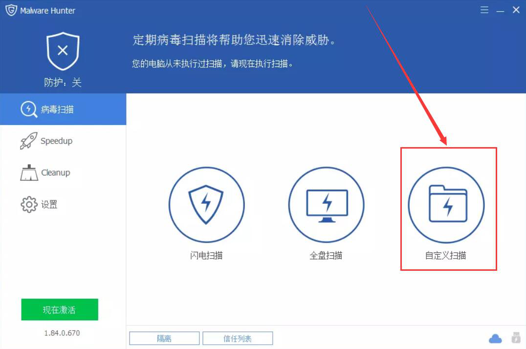 1、首先,我们打开Glarysoft Malware Hunter Pro软件,根据自己的需要选择扫描电脑病毒的方式,这里选择“自定义扫描”。