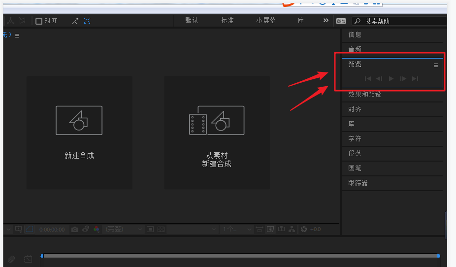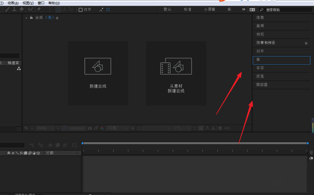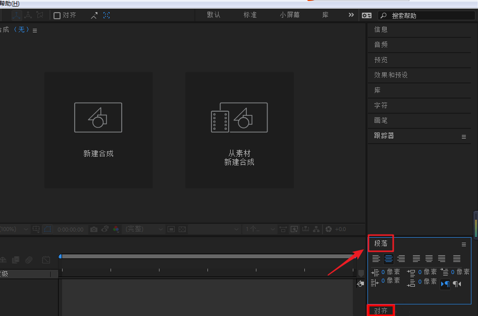 另外,大家可以将“对齐”和“字符”按住鼠标不松手,往时间面板下面拖拽,使其固定在下面,能够使得我们充分利用有限的工作区区域。