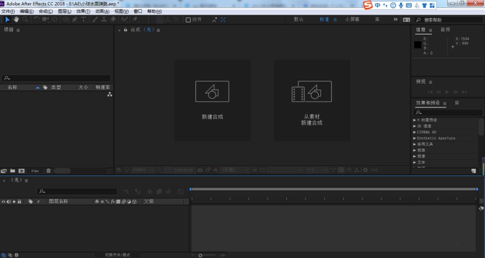 首先打开Adobe After Effects软件,进入界面,如图,查看默认的面板工作区,