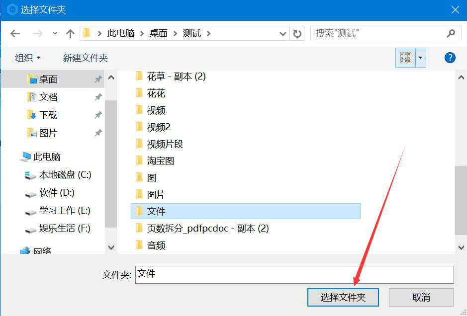 5、此时,彩虹猪PDF转换器会弹出浏览文件夹窗口,我们选择PDF文件转Excel后的保存路径,再点击“选择文件夹”按钮。