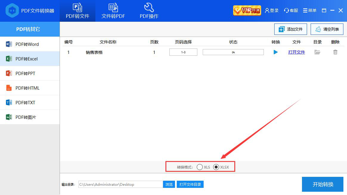 3、然后,我们回到PDF转Excel操作界面,根据自己的需要选择转换格式。