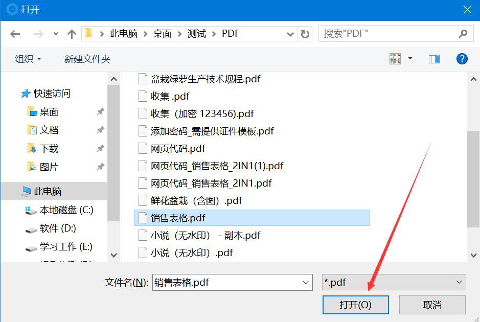 2、在弹出的窗口中,我们选择需要转换成Excel的PDF文件,并点击“打开”按钮,将其导入彩虹猪PDF转换器。
