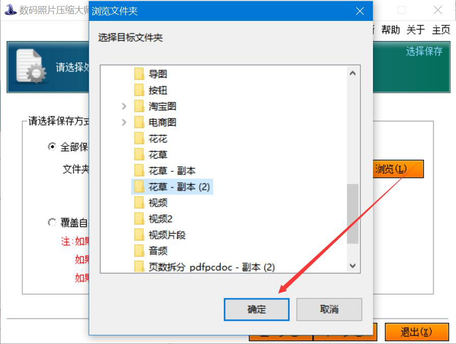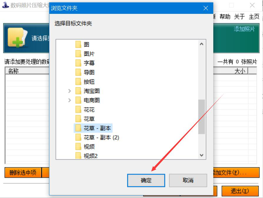 2、在数码照片压缩大师弹出的浏览文件夹窗口中,我们选择需要批量压缩的图片文件夹,并点击“确定”按钮。