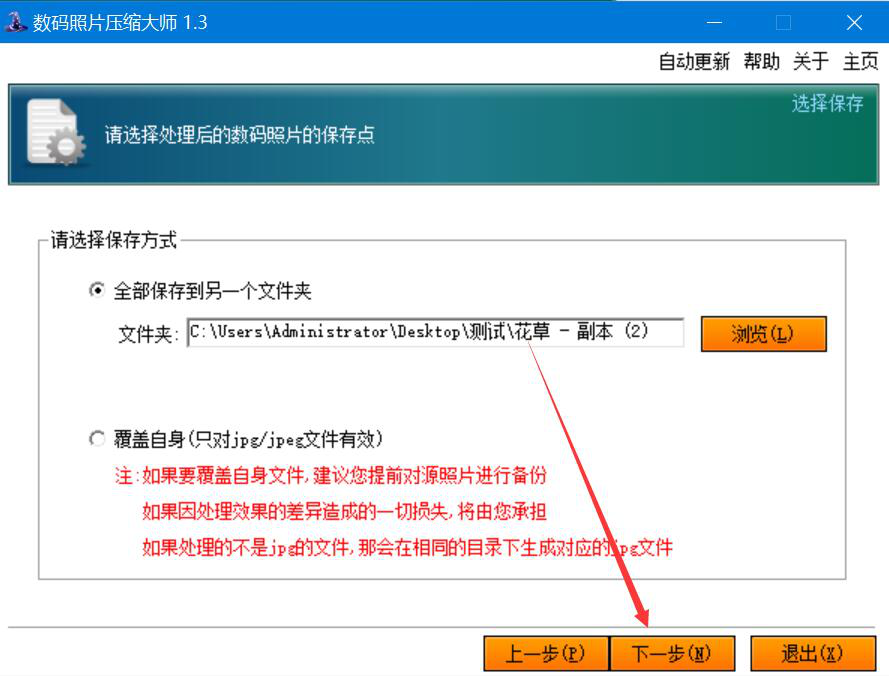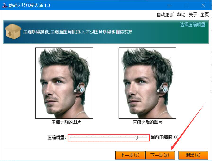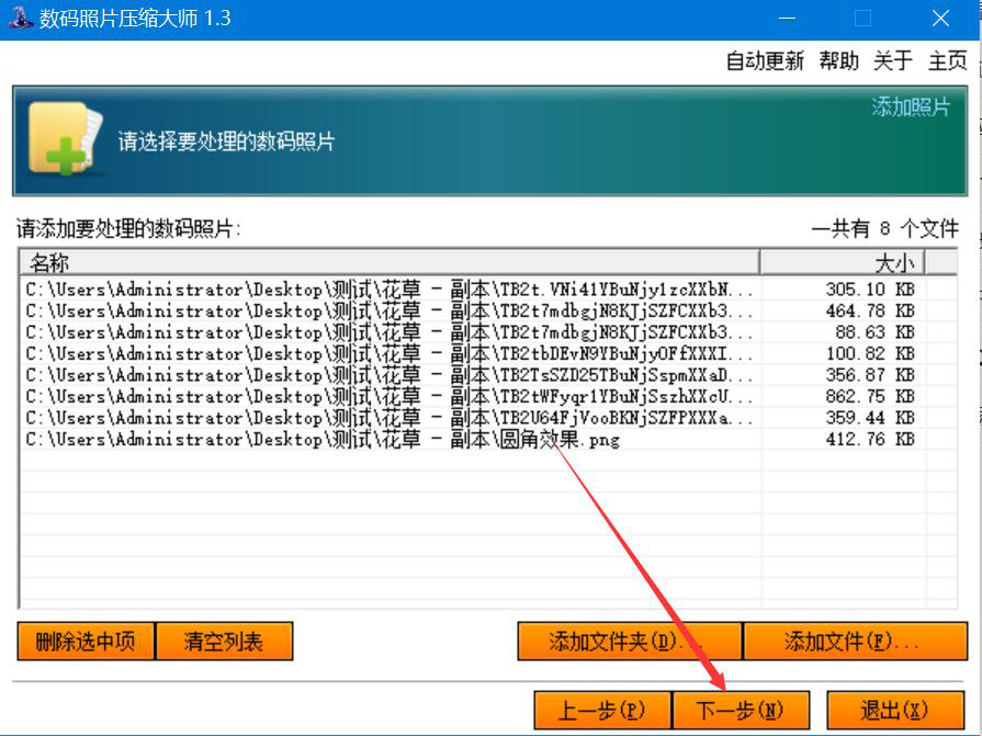 3、然后,我们回到数码照片压缩大师操作界面,点击“下一步”按钮。