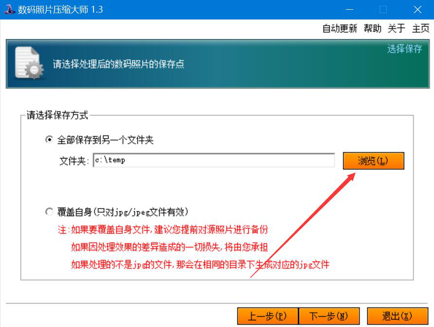 4、进入图片压缩后的保存点设置窗口,如果输出路径要更改,我们就点击界面中的“浏览”按钮。