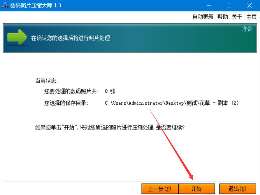 8、接着,我们点击界面右下方的“开始”按钮,数码照片压缩大师便开始批量压缩图片。