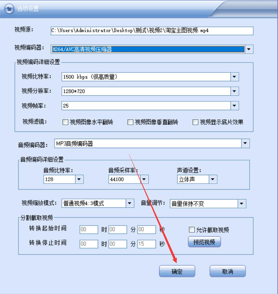 4、接下来,闪电HD高清视频转换器会跳转至选项设置界面,我们可以设置视频转换时的其他参数,设置好了后,点击“确定”按钮。