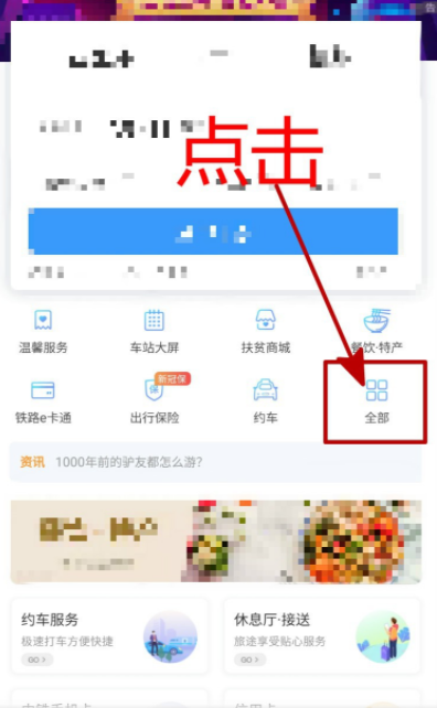 在手机中打开12306APP,登录账号,进入首页,找到遗失物品查找功能,如果没有找到,可以点击【全部】,