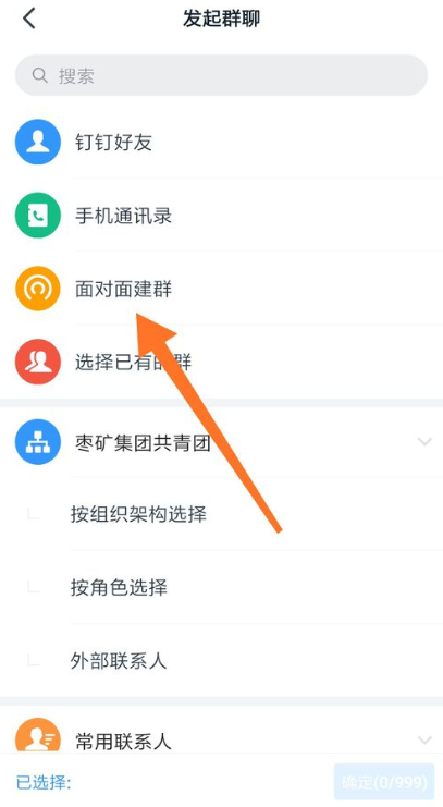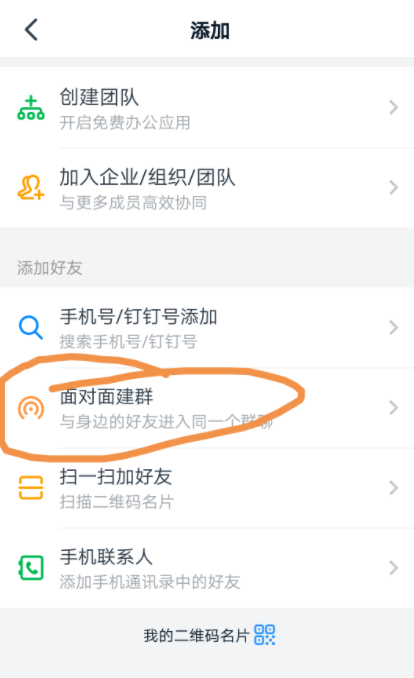进入通讯录,点击上方【+】,跳转界面,如图,点击【面对面建群】,
