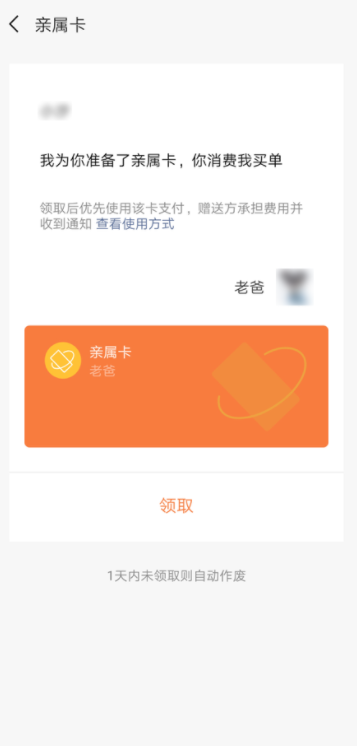 我们可以给父母、子女赠送亲属卡,设置每月亲属卡的消费额度,对方在使用亲属卡消费时就会自动从我们的支付账户中扣除资金。