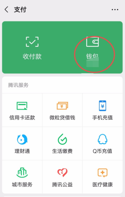 进入支付界面,点击【钱包】,打开钱包,找到【亲属卡】,