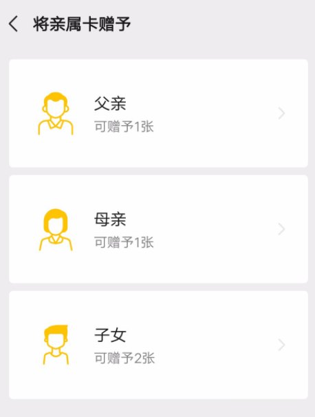 如图,点击【查看使用说明】,了解亲属卡的官方说明,然后点击【赠送】,选择赠送对象,目前仅支持开启四张亲属卡,