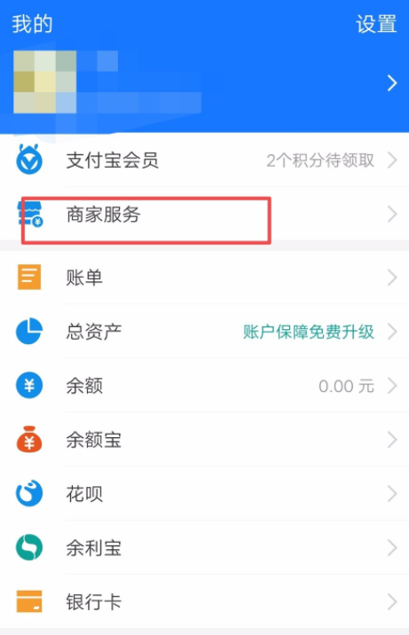 打开手机支付宝,进入首页,点击底部【我的】,选择【商家服务】,