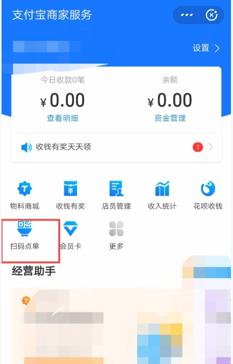 进入支付宝商家服务界面,点击【扫码点单】功能,