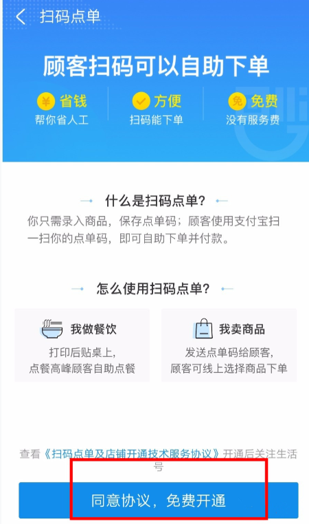 支付宝怎么开通扫码点单?
