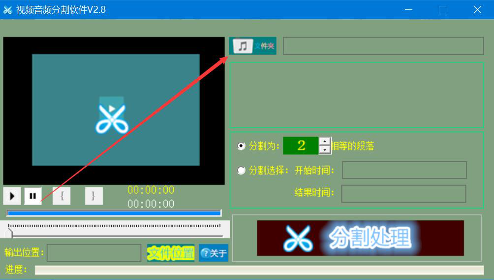 1、首先,我们打开视频音频分割软件,点击界面中的“文件夹”按钮。