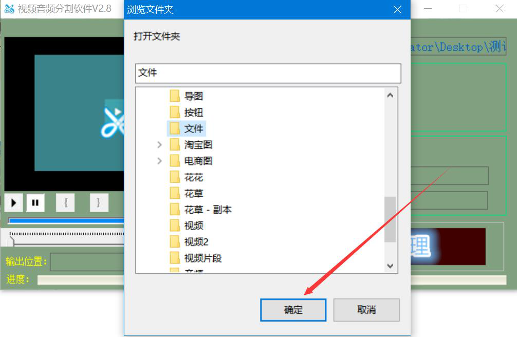 5、接下来,在视频音频分割软件弹出的浏览文件夹窗口中,我们选择音频分割后的文件保存路径,再点击“确定”按钮。