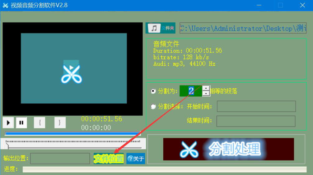 4、分割音频的段落设置好了,我们点击视频音频分割软件操作界面中的“文件位置”按钮。