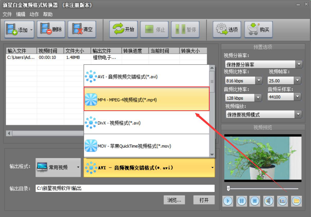 新星白金视频格式转换器怎么将AVI转换成MP4?