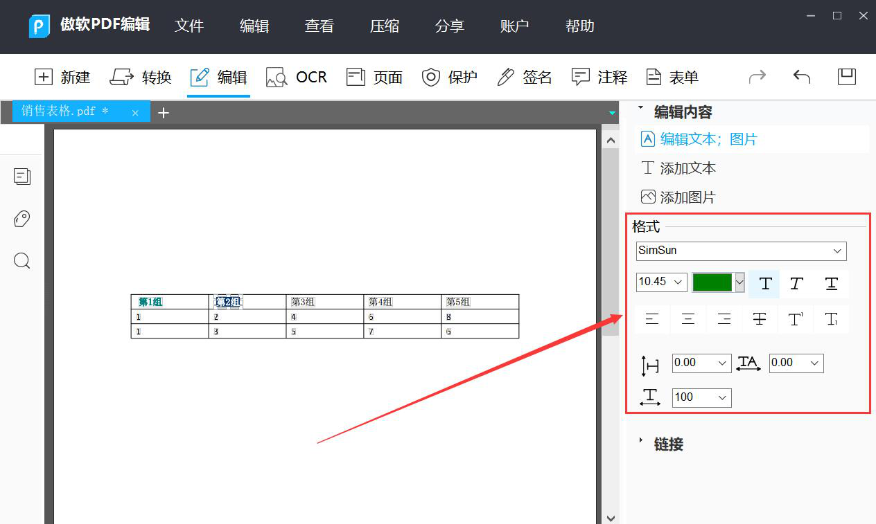 5、编辑好PDF文件的文字后,我们在傲软PDF编辑软件中,还可以修改文字的格式,比如文字的颜色、字体等等。
