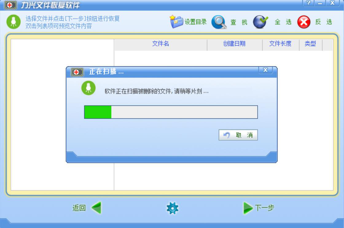 2、然后,我们便可以看到力兴文件恢复软件正在扫描该磁盘中之前删除的并且可以恢复的文件。