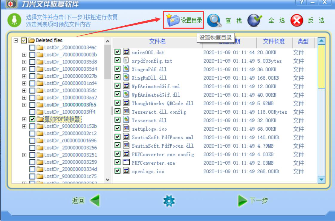 4、接下来,我们点击力兴文件恢复软件界面上方的“设置目录”按钮,从而设置恢复目录。