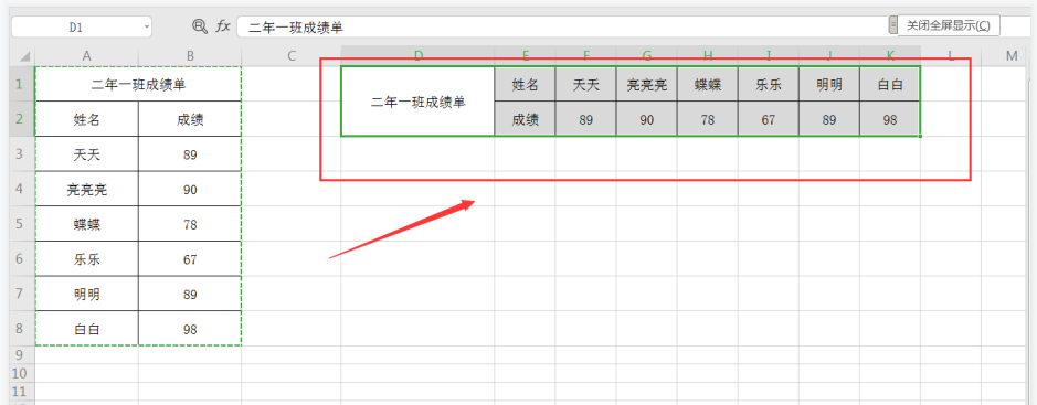 返回Excel表格,你会发现横向的表格数据转换成竖向了,这个方法不仅可以将列转为行,同样也可以将行转为列。