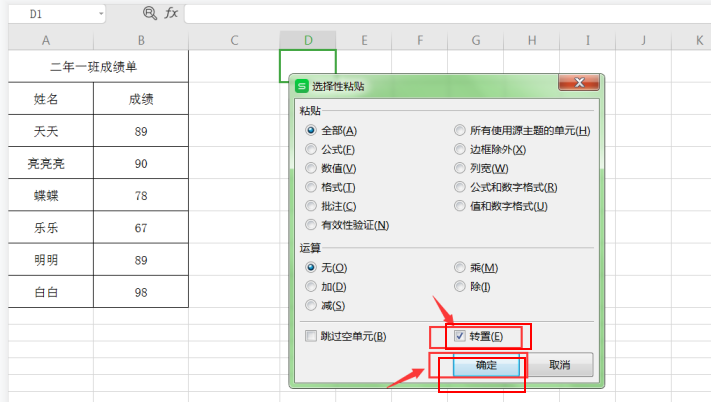 弹出【选择性粘贴】窗口,找到【转置】选项,进行勾选,点击确认即可,