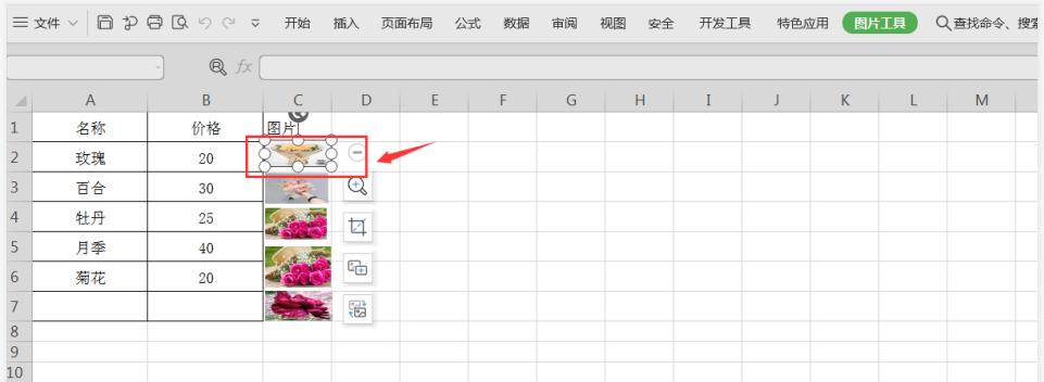 首先打开一个Excel工作簿,如图,选中并单击单元格中的一张图片,