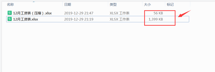 通过对比,你会发现压缩之后的表格文件的体积已经变小了,如图所示。