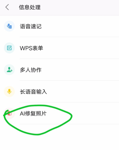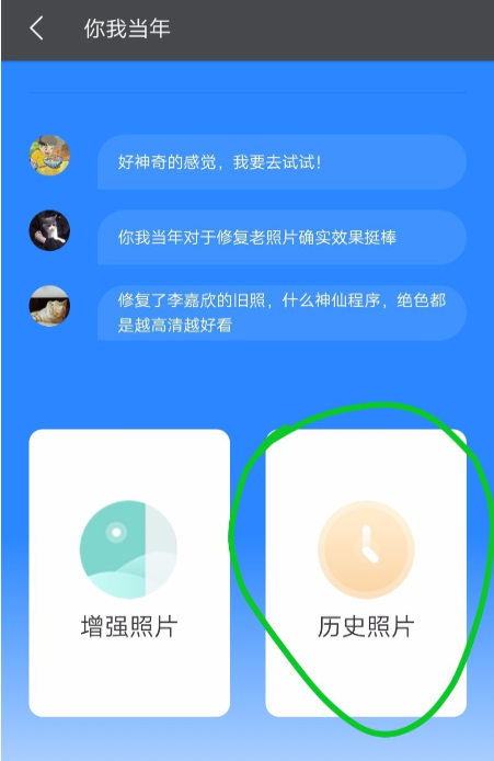 如图,找到【AI修复照片】功能,点击【历史照片】,