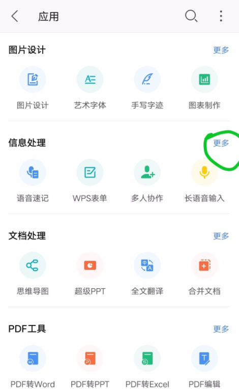 进入应用界面,点击【信息处理】——【更多】选项,