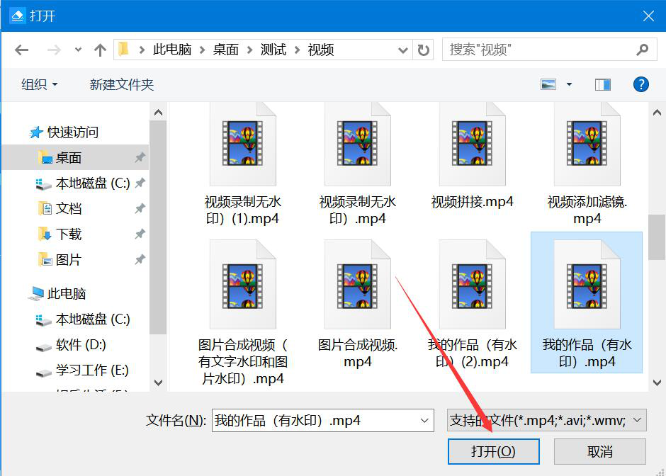 2、在弹出的窗口中,我们选择需要去除水印的视频,并点击“打开”按钮,将其导入一抖水印助手。